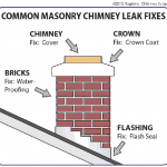 • Inspect flashing, masonry, cap. nail down loose flashings and seal with roofing cement.